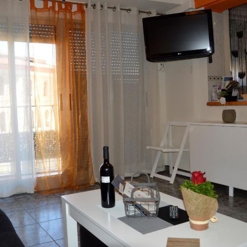 Coqueto y soleado apartamento situado en la avenida principal de Villena, justo frente a su monumento Plaza de Toros. Dispone de cocina totalmente equipada separada por una barra americana del salón comedor equipado con sofá-cama y vistas al balcón.
