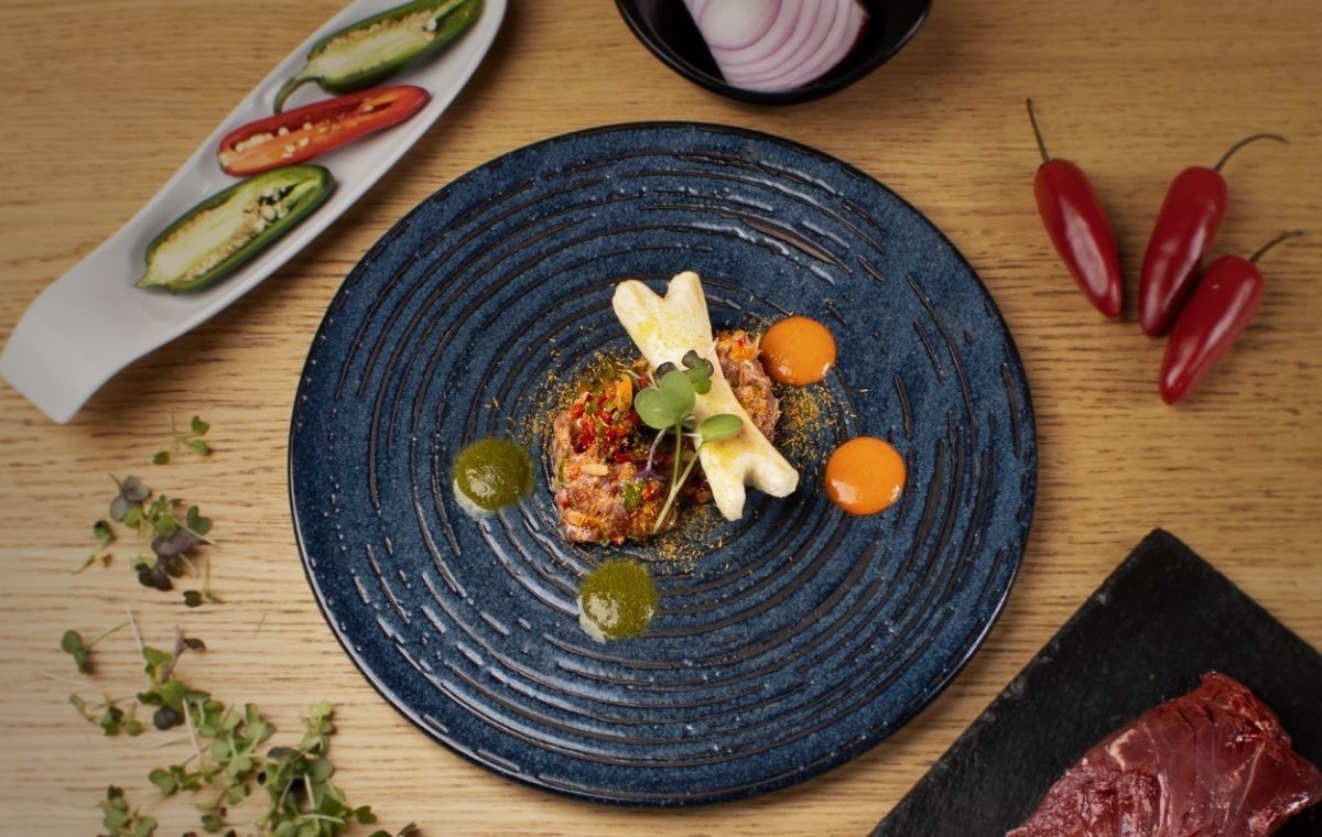 Entrantes: Ceviche clásico de corvina, Causa acevichada con aguacate y pollo, Carbón de yucas con salsa de huancaína.