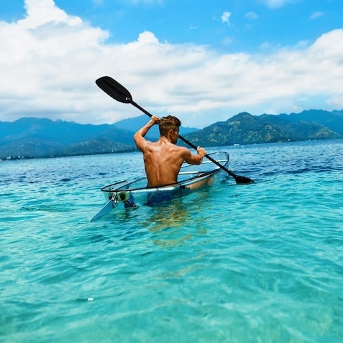 Ruta guiada larga en kayak transparente