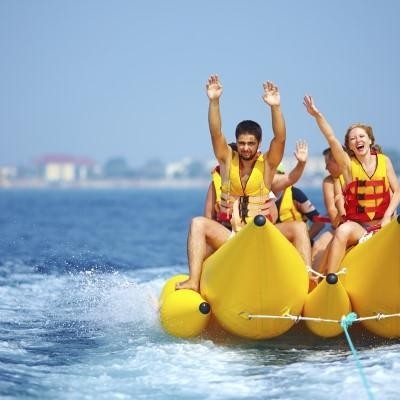 Cabalgar sobre las olas con tus amigos y compañeros se convierte en una experiencia inolvidable. Apto para todas las edades, niños jóvenes, familias. Desequilibrio, trabajo en equipo, adrenalina extrema. Cabalga sobre las olas con la banana hinchable y procura no volcar ¡Este es el reto!