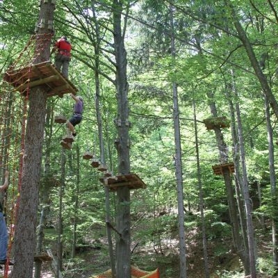 ¿Te gusta la emocion de andar por las alturas? ¿Las Tirolinas? Si es asi en el parque de Aventura de Larraona te lo pasarás en grande. Para grandes y pequeños.