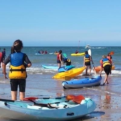son dobles y muy estables. Antes de la realización de la actividad se les realiza una breve explicación de la práctica del kayak. El recorrido es desde la playa hasta las islas, realizando una o varias paradas.