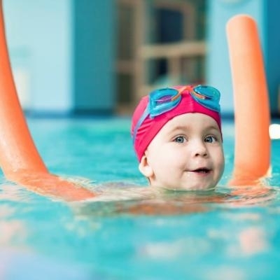 Realizamos un trabajo con el propósito de familiarizar completamente al niño con el medio acuático y lograr distancias cortas de nado básico espaldas y crol.