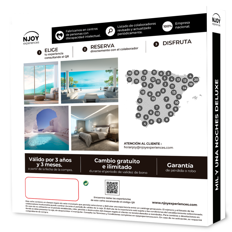 NJOY Experiences te propone "Mil y una Escapadas DELUXE" en pareja. Disfruta de un fin de semana de desconexión total, una escapada romántica con cena, una estancia relajante con circuito spa o una divertida estancia familiar en la naturaleza en hoteles hasta 4* en España y Andorra. ¡Para todos los gustos!